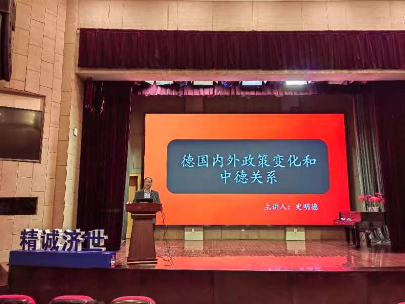 在两个小时的时间里,史明德会长深入浅出地总结了德国历史与政治的突出特点,阐述了当前德国内外政策和对华政策的最新变化,并同与会学生分享了自身长期的外交实践经历。史明德会长指出,作为数十年中德关系的直接参与者和亲历者,他见证了中国崛起的伟大进程和大国外交的实践成果,尽管近年来中德关系走向日益复杂,但他对于中德关系的坚实基础和发展前景充满信心。史明德会长的精彩报告博得了同学们的阵阵掌声,激发了与会学生的极大共鸣和踊跃提问。在讲座中,史明德会长勉励与会学子成长为国家的栋梁之才,为中华民族的伟大复兴贡献自身力量。