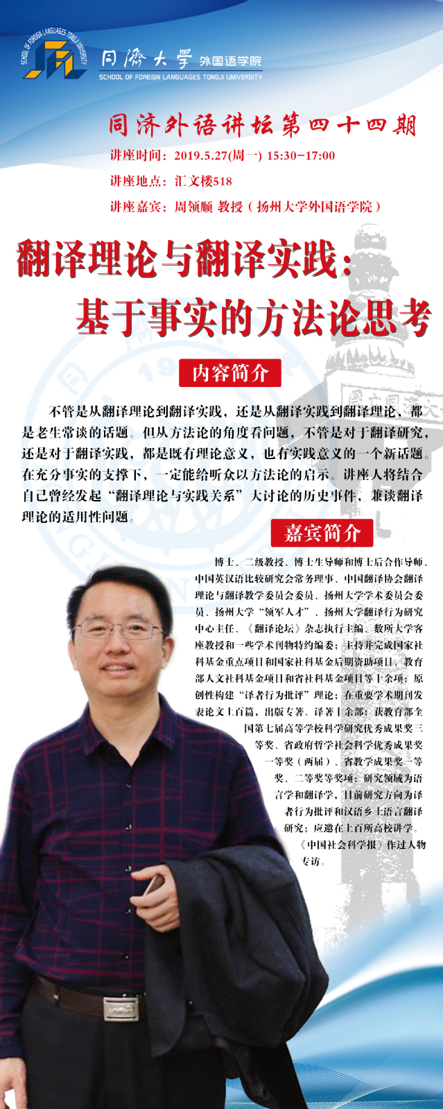 【同济外语讲坛第四十四期】翻译理论与翻译实践:基于事实的方法论思考