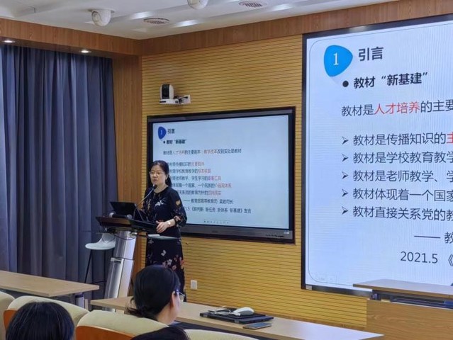 最后,王蓓蕾总结发言,感谢徐锦芬教授具有前瞻性、启发性、实用性的指导。本次讲座既高屋建瓴,涵盖了教材编写与使用的政策导向、前沿理论和热点问题,又联系实践,呈现了外语教材编写、使用和研究实例,拓宽了我院教师的学术视野,为高质量外语教材编写、使用和研究指明了方向和途径,将有效助推我校外语教育的创新性改革和发展。