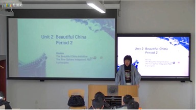 yl8858永利集团公共英语教学部刘宇翔老师充分利用多模态教学资源,通过视频、图片和思维导图等方式深入浅出地讲述了“美丽中国倡议”“、“新发展理念的五要素”等主题单元的背景、哲理和实践以及推进新时代生态文明建设的六原则。两校学生在老师的引导下积极参与形式多样的“云端互动”,课堂气氛活跃,新颖的授课方式有效地激发了学生们的学习热情,产生了思维的碰撞,携手讲好中国故事。