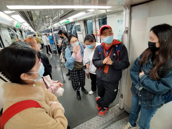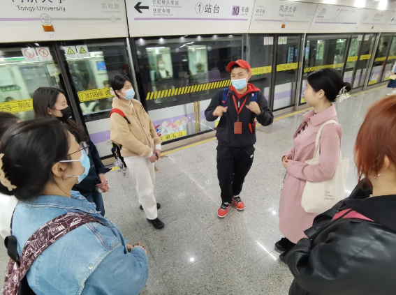 在前往淮海中路新渔阳里的途中,对“渔阳里”充满好奇的同学们展开了热烈讨论。“野生”讲解员沈元同学在地铁上以轻松、诙谐的方式向大家简单介绍了“渔阳里”的相关背景,让大家十分期待此次参观。