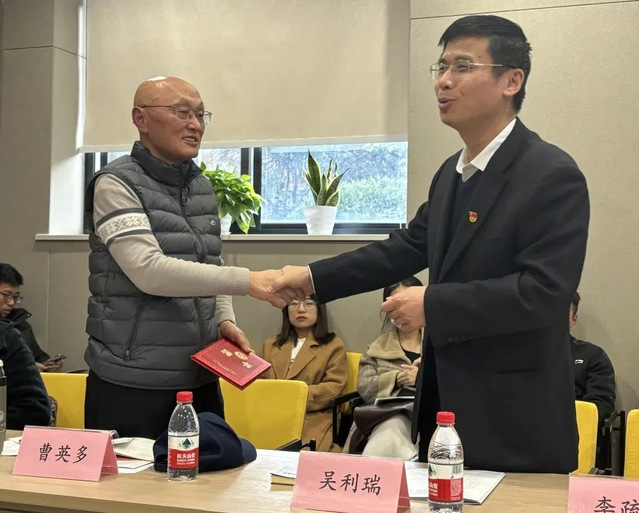 活动最后,吴利瑞部长再次感谢曹英多老师二十年来持续关心青年学生的成长成才,发挥老党员“退岗不褪色,离休不离心”的奉献精神,并为其颁发“yl8858永利集团红色‘济’忆领航员”聘书。