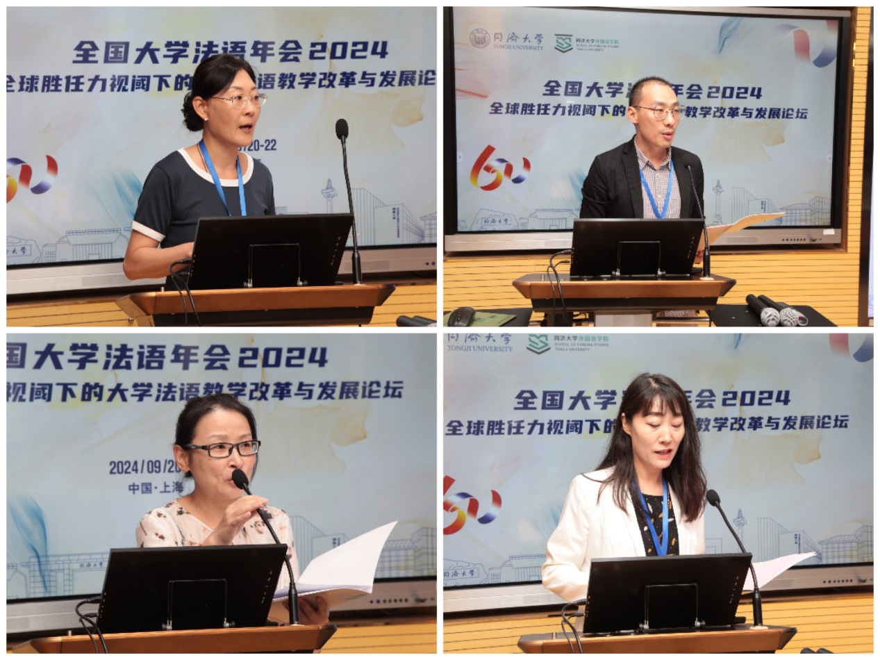 闭幕式环节由刘洪东教授主持。电子科技大学刘文玲副教授、天津大学李俊凯副教授、上海外国语大学李沁教授和国际关系学院白琨副教授等四位分论坛主持人向大会陈述各自议题的研讨成果,为大学法语教育的未来发展提供参考和启示。