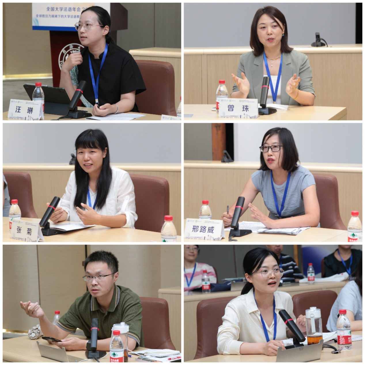 随后,大会各分论坛深入探讨了大学法语教学的前沿议题。其中,“全球胜任力培养与大学法语教学”分论坛强调,通过跨文化交流项目与实践课程,提升学生全球视野与语言能力;“新文科与大学法语教学体系创新”聚焦学科交叉融合,推动法语教学向综合性、创新性发展;“数智化与大学法语一流课程建设”分论坛展示了AI、大数据等技术在法语教学中的应用,助力构建智慧课堂;“新需求与大学法语的测试与评估”分论坛则针对国家战略需求变化,探讨了更加科学、全面的法语能力评价体系,为人才培养提供有力支撑。参会老师们分享交流了各自的教学经验和创新思路,现场反响热烈。