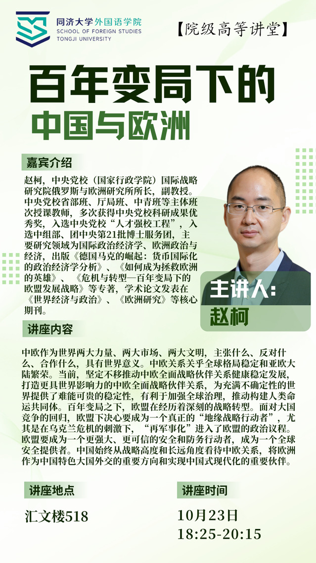 【讲座 10月23日】院级高等讲堂:百年变局下的中国与欧洲