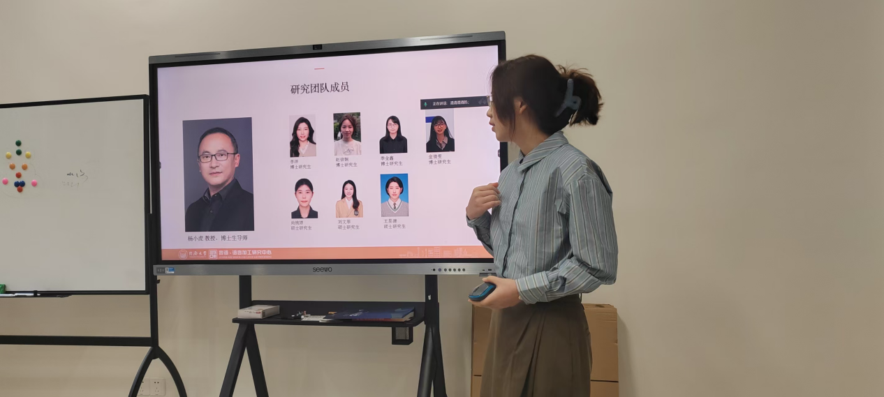 赵信娴,言语-语言加工中心的博士研究生,于本次交流中对杨小虎教授团队近期的研究进行了简要介绍。主要内容为普通话老人语音加工的系列研究,方言老年人语音加工的系列研究,以及团队对于老年人语音加工研究的未来展望。