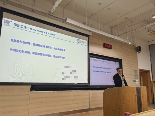 党委副书记母朝静通报了学生就业情况,指出促进高质量充分就业是新时代新征程就业工作的新定位、新使命。学院将继续落实学生就业工作“十个一”的要求,同时将持续关注学生的心理健康和学业等问题,坚守育人安全底线、保障学生安全成才环境,协同发展力争高线、彰显学院学科特色,造就成就学生。