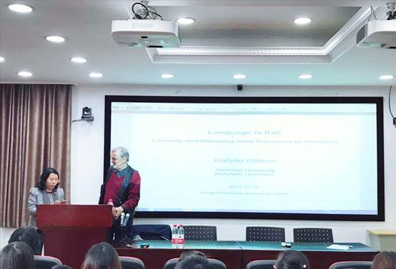 在互动问答环节中,Dafydd Gibbon教授热情而幽默地回答了现场学生提出的若干问题,其逻辑缜密的回答方式既能动之以情,又能晓之以理,为现场师生带来了别开生面的视听盛宴。