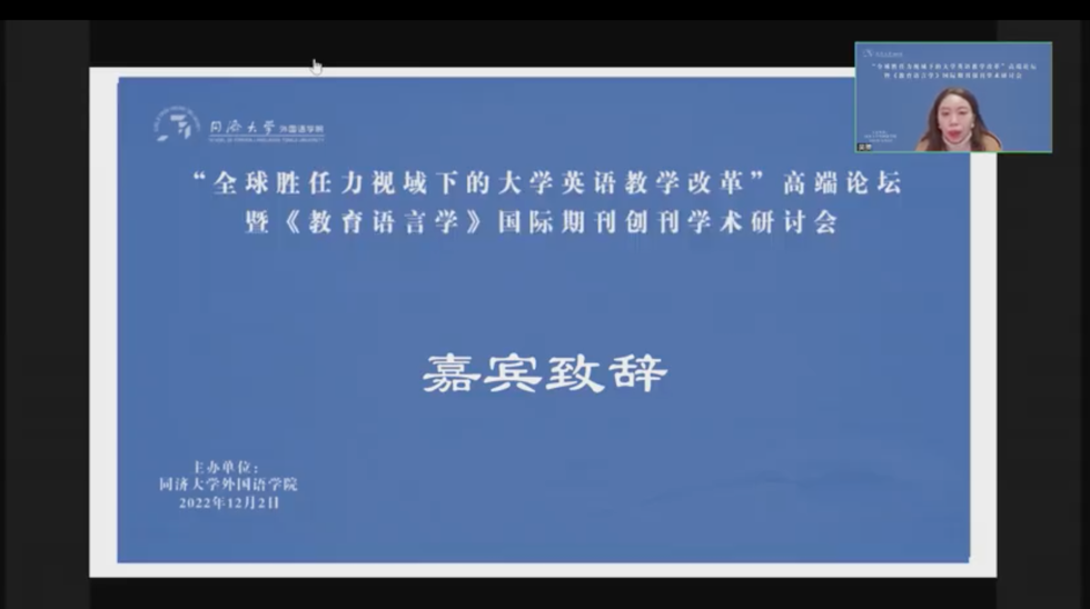 12月2日,由yl8858永利集团主办的“全球胜任力视域下的大学英语教学改革”高端论坛暨《教育语言学》国际期刊创刊学术研讨会在线上举行。本次论坛采取主旨报告、院长论坛和主编论坛的形式,围绕新时代大学英语教学改革方向、改革实践、改革研究和新时代外语教育研究国际前沿四个议题展开,并举行了《教育语言学》创刊仪式。