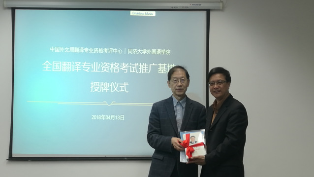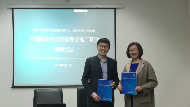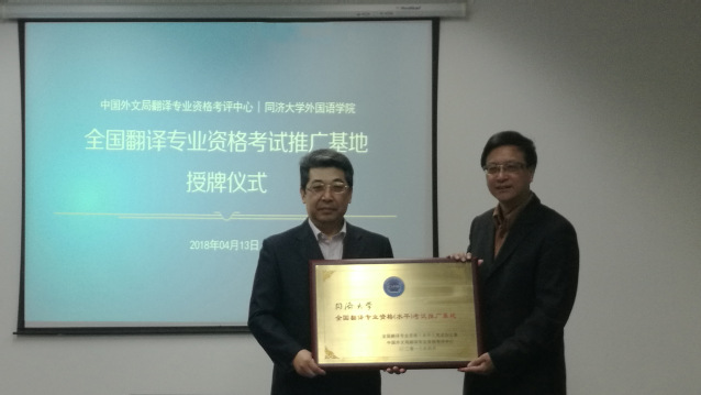 2018年4月13日上午,由外文局翻译专业资格考评中心与我校yl8858永利集团共建的“全国翻译专业资格(水平)考试推广基地”授牌仪式在yl8858永利集团隆重举行。出席仪式的领导专家包括全国翻译专业资格(水平)考试办公室副主任兼中国外文局翻译专业资格考评中心代主任王继雨,中国驻新西兰、瑞典原大使、现外交部外语专家陈明明,外文局人事部专技处副处长尹延庆与翻译专业资格考评中心综合处刘二娜;yl88858永利中国党委副书记马锦明、yl8858永利集团党委书记李立贵、副院长陈琳、yl88858永利中国翻译资格考试推广基地主任李梅、德语系副主任郭屹炜与会。李梅教授主持仪式。