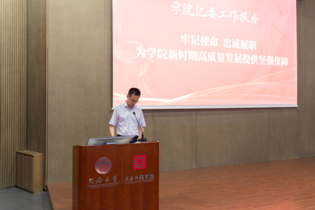 党委副书记、纪委书记(兼)宋波同志代表学院纪委作了题为《牢记使命忠诚履职为学院新时期高质量发展提供坚强保障》的工作报告。报告回顾了过去五年纪委的工作和经验,并对今后五年坚定不移全面从严治党和纪检工作提出了建议和展望。新一届纪律检查委员会将在学校纪委和学院党委的坚强领导下,始终坚守党的初心使命,忠实履行职责,把严的基调、严的措施、严的氛围长期坚持下去,不断深化全面从严治党工作,推动学院纪检工作取得新成绩,努力为学院各项事业高质量发展提供坚强政治保障。