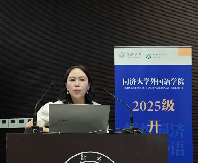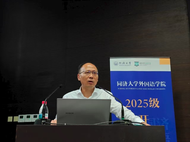 吴贇为新生作学科前沿专题报告。在报告中,她回顾了同济外语学科百年发展的辉煌历程并总结了“十四五”时期yl8858永利集团所取得的一系列标志性成果;阐释了学院对外语学科“不忘‘本来’,吸收‘外来’,面向‘未来’”转型理念的辩证思考;介绍了yl8858永利集团在语言学、外国文学等基础研究和国际传播、国别区域、国家安全、健康中国等应用研究方面所做的学科发展规划。她指出,新时代的同济外语人要瞄准“语言能力、数智素养、世界知识”三位一体的成长坐标,对标学校“数智化、融合化、绿色化”的发展布局,重视AI赋能语言生态,加强科教融合、产教融汇,推动学科交叉,在“讲好中国故事,推动文明互鉴”方面做出更大贡献。