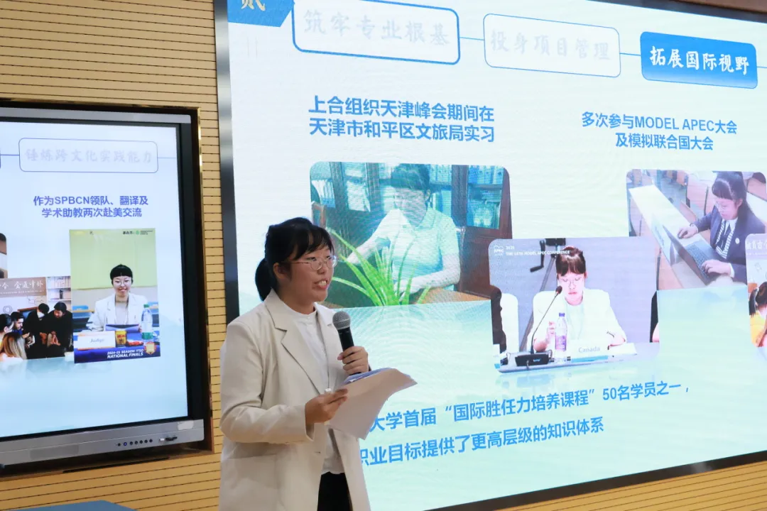 比赛过程中,成长赛道和就业赛道的10名选手分别围绕自身的职业目标做生涯发展展示和求职综合展示。主题展示紧扣职业成长轨迹、职业发展目标和未来求职意向,并将个人理想与国家需要、经济社会发展紧密结合,充分展现了外院学子积极进取、努力奋斗的精神面貌和“以语为桥、沟通世界”的外语人担当。
