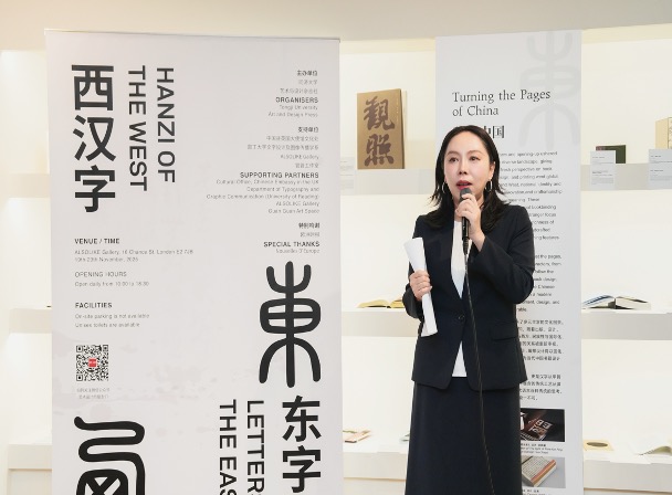英国巴斯市前副市长、巴斯大学中英文语言翻译专业主任余德烁教授则以“黄金桥梁”喻汉字之于东西方文明。他指出,“作为一名汉学家和翻译教育者,对我来说,汉字不仅是研究对象,更是连接两种思维方式的桥梁。”他提到,“此次展览以精巧策划展现文字如何在日常生活、数字媒介、跨文化传播中不断演变与生长,成为中英观众对话与联结的视觉触点与情感共振。”他还认为,本次展览极具启发性,并衷心祝愿它能成为许多人了解中国、爱上汉字的崭新起点。