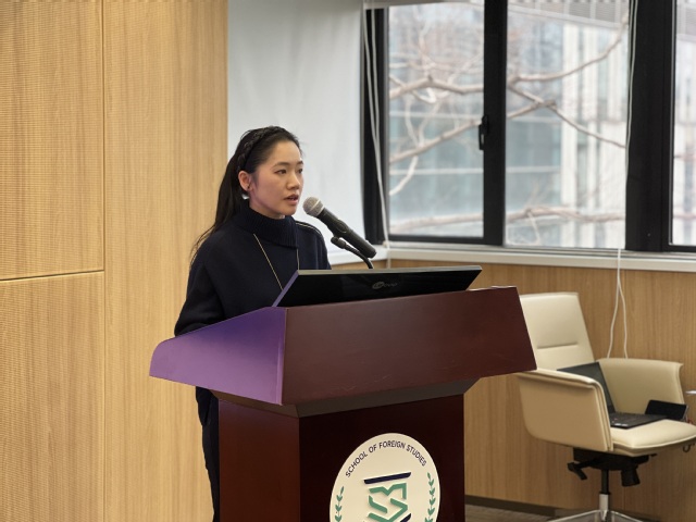 在人才培养专题环节,王蓓蕾与胡琪副院长作了报告,明确了学院“三国三语”的发展方向与“精语言、通文理、融中外”的核心培养要求,重点阐述了公共外语教学改革规划,提出构建多语种协同育人体系,打造贯通融合的新型课程链,大力推进课程资源数字化与教材建设特色化。同时,报告部署了2026年专业人才培养的重点工作,涵盖本研培养方案优化、智慧教育生态建设、人才培养模式创新、深化实践创新与产教融合等方面。