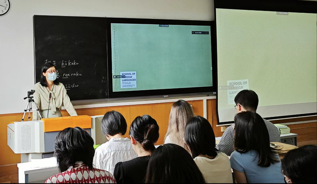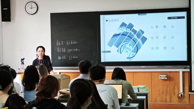 本次实习动员会还邀请了2019级日语专业郭文宇、德语专业毛蓓怡、英语专业金晓帆作为优秀学长学姐分享实习经验。三位同学结合自身实习经历,从行业岗位选择、简历制作投递、面试技巧、工作经验等方面出发,分享了在实习中的收获和体会。