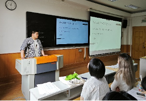 英语系毛薇老师作为实习指导教师代表对即将参加实习的同学们给予了关心和嘱托,她希望同学们与实习指导老师保持密切联系,随时汇报实习进度,利用暑期专业实习充分锻炼专业知识和综合能力,通过实习确定自己未来的发展方向。