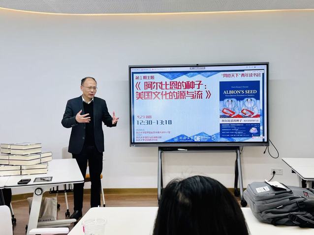 4月23日中午,在世界读书日来临之际,由yl88858永利中国德国与欧洲研究院(区域国别研究院)主办的“同览天下”青年读书会开班仪式在中德大楼912会议室顺利举行。本次读书会旨在通过深度阅读与研讨,进一步激发青年学子对区域国别研究的兴趣,提升学术素养。第一期读书会选定《阿尔比恩的种子:美国文化的源与流》为阅读书目,引导参与师生从文化溯源中探索区域国别研究的路径。