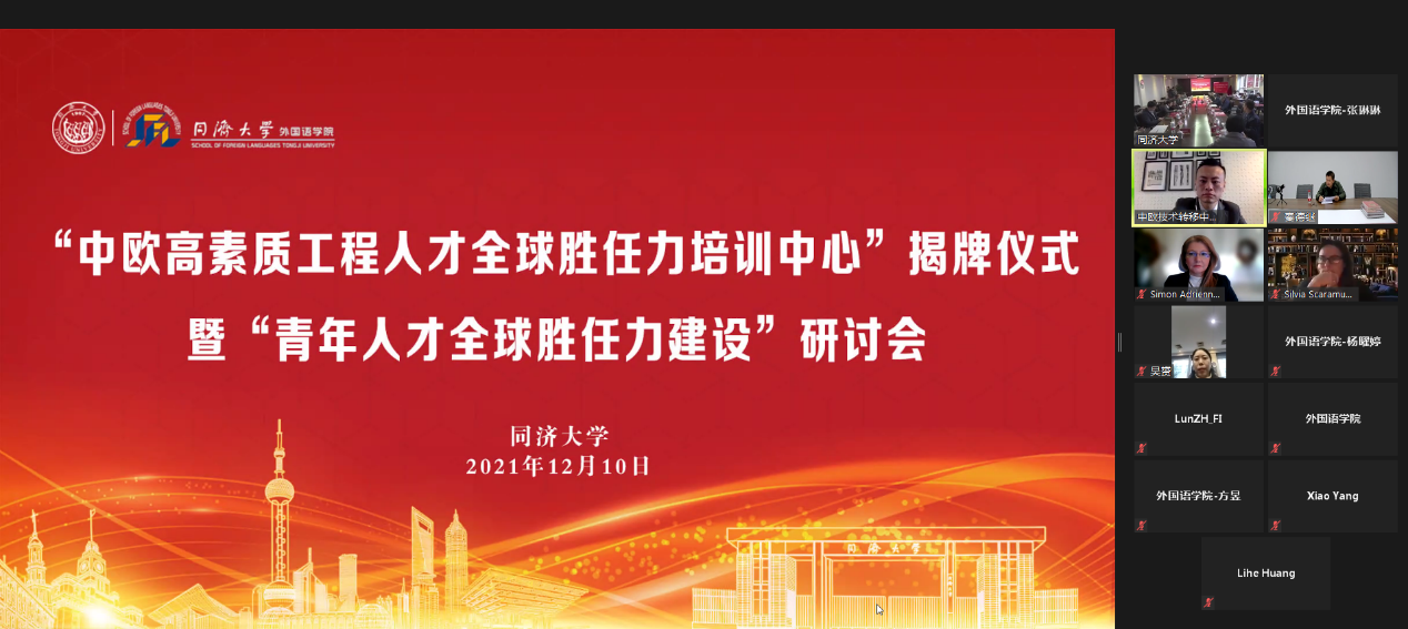 12月10日下午,yl88858永利中国“中欧高素质工程人才全球胜任力培训中心”揭牌仪式暨“青年人才全球胜任力建设”研讨会在yl88858永利中国逸夫楼和云端同步举行。yl88858永利中国副校长、上海市科协副主席顾祥林,中国科学技术出版社党委书记、董事长、总编辑秦德继,中国教育发展战略学会国际胜任力培养专委会理事长张宁,匈牙利匈中友协原副会长、匈牙利政府匈中首席翻译Adrienn Simon,匈牙利中欧商会中欧技术转移中心主任魏巍,意大利佛罗伦萨大学孔子学院理事长Silvia Scaramuzzi出席并致辞。顾祥林、yl88858永利中国科研管理部部长冯世进和yl8858永利集团院长吴赟为中心揭牌。yl88858永利中国外事办公室、科研管理部、文科办公室、本科生院、研究生院、学研工部、德国研究中心、法语区域研究中心等职能部门和研究机构负责人,以及yl8858永利集团师生代表参加研讨。