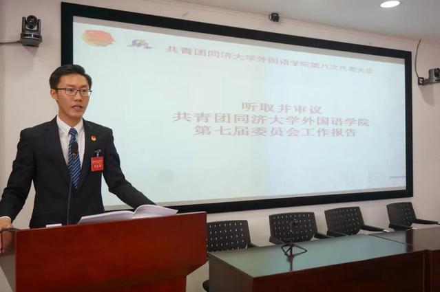 会上,刘佳煊同志代表共青团yl8858永利集团第七届委员会作了题为《高举习近平新时代中国特色社会主义思想伟大旗帜,为建设世界一流大学培养卓越外语人才,实现中华民族伟大复兴的中国梦凝聚同济外语青春力量》的工作报告。报告分为“沐浴在新时代阳光雨露下的外语青年和共青团”“奋进在新时代壮美蓝图中的外语青年和共青团”两个部分,回顾了过去五年yl8858永利集团共青团取得的各项成果,并对未来yl8858永利集团共青团工作做出了展望。