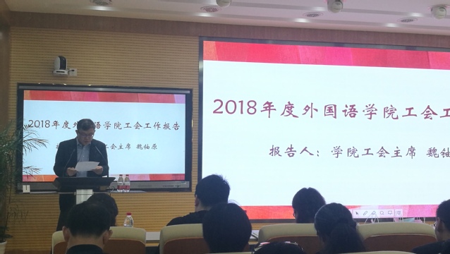 魏铀原就加强工会自身建设、学院师德师风建设、教职工关怀等方面做了2018年工会工作报告,报告指出,2018年学院工会在校工会和学院党政班子领导下开展了一系列活动:多渠道做好教职工政治理论学习工作,关心教职工生活,积极开展各项有益活动,增强凝聚力,切实关心教职工的切身利益,切实进行''六必访''和帮困补助慰问等活动。他表示,2019年学院工会将进一步组织大家学习党的方针政策,坚决落实校工会对基层工会工作的部署,提高工会整体素质,为教职工多办实事,办好事,为构建和谐学院、深化学院学科建设做出应有的贡献。