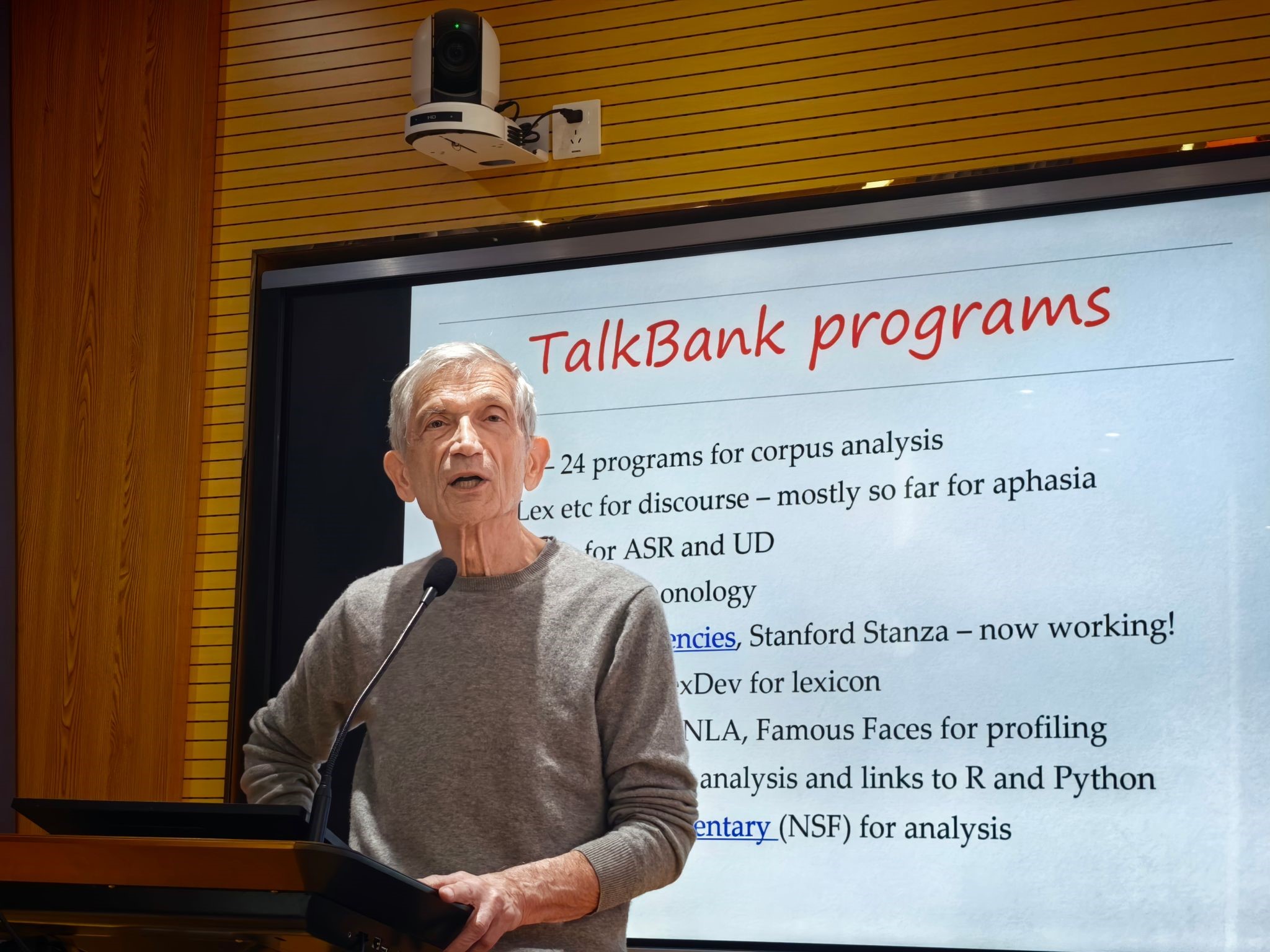 Prof. Brian MacWhinney is a globally recognized scholar in first and second language acquisition, psycholinguistics, and neurolinguistics. He is the creator of TalkBank, an pioneering open-access repository for language studies across 14 topics and 40 languages. The platform offers a standardized transcription format and a suite of analytical tools powered by NLP, ASR, ML, and AI. Its subproject, DementiaBank, is recognized as a critical international resource for research on language and aging.