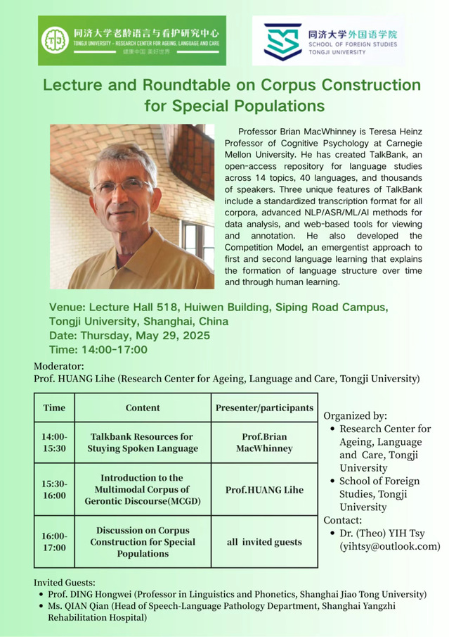 Lecture and Roundtable on Corpus Constructionfor Special Populations